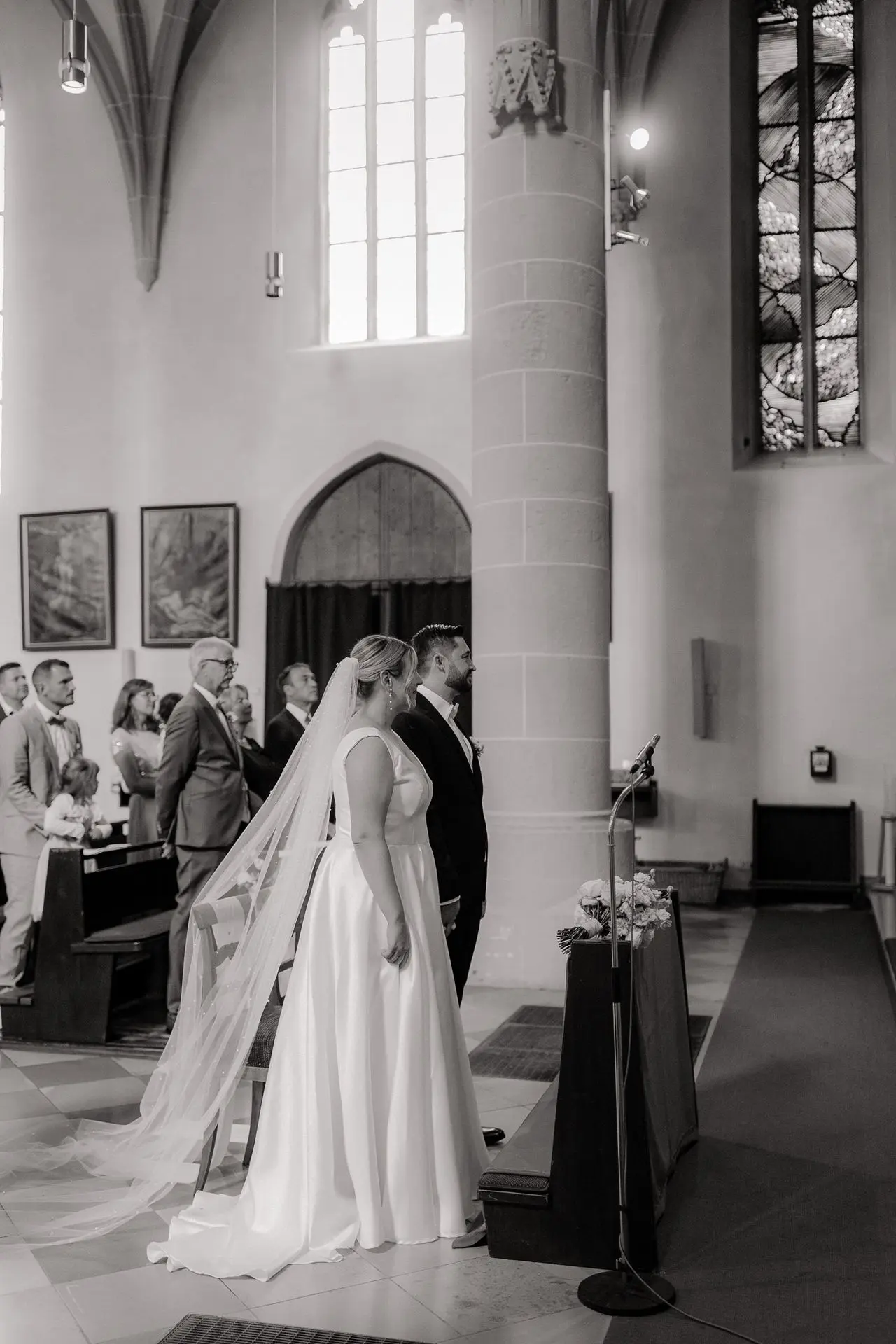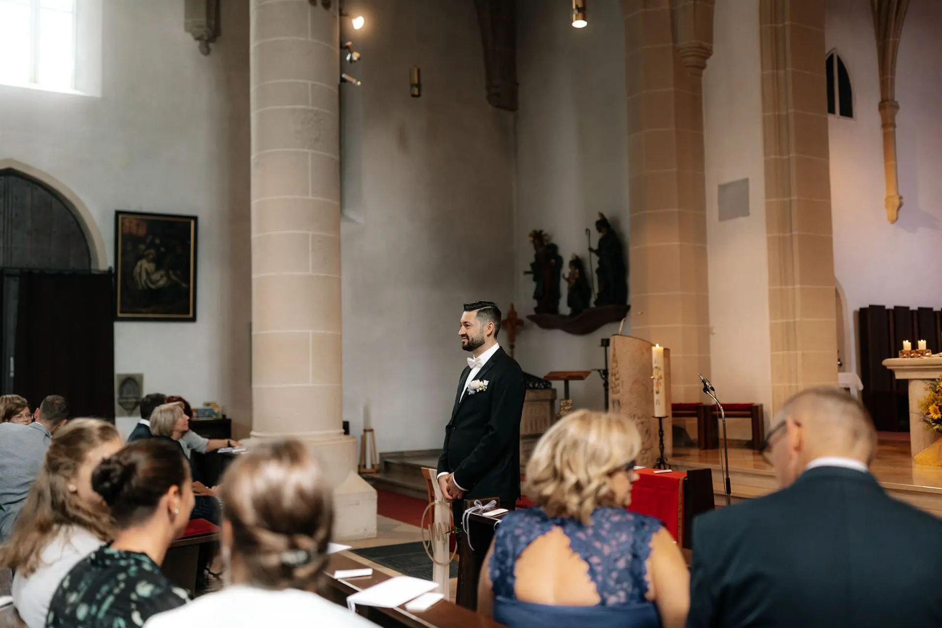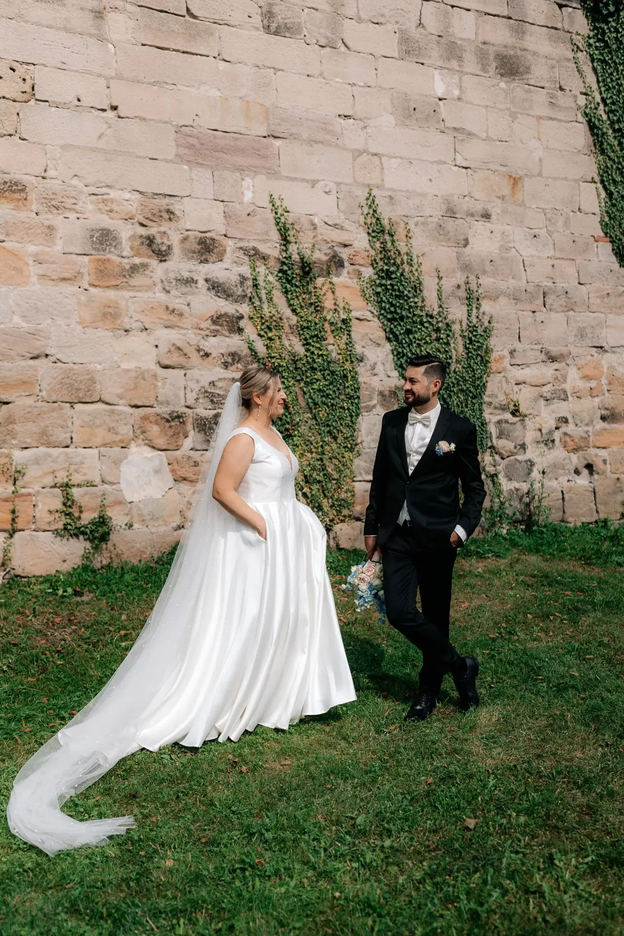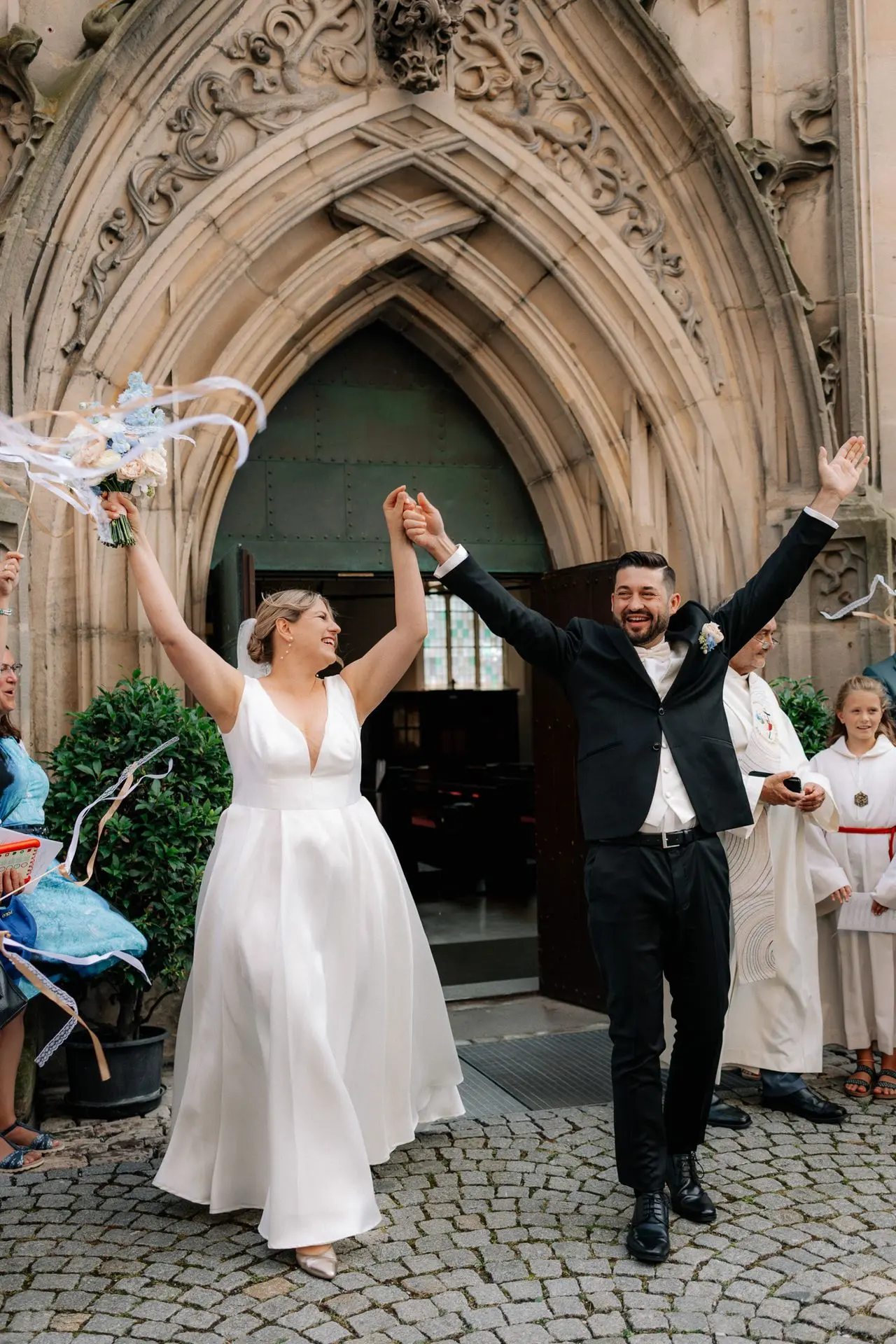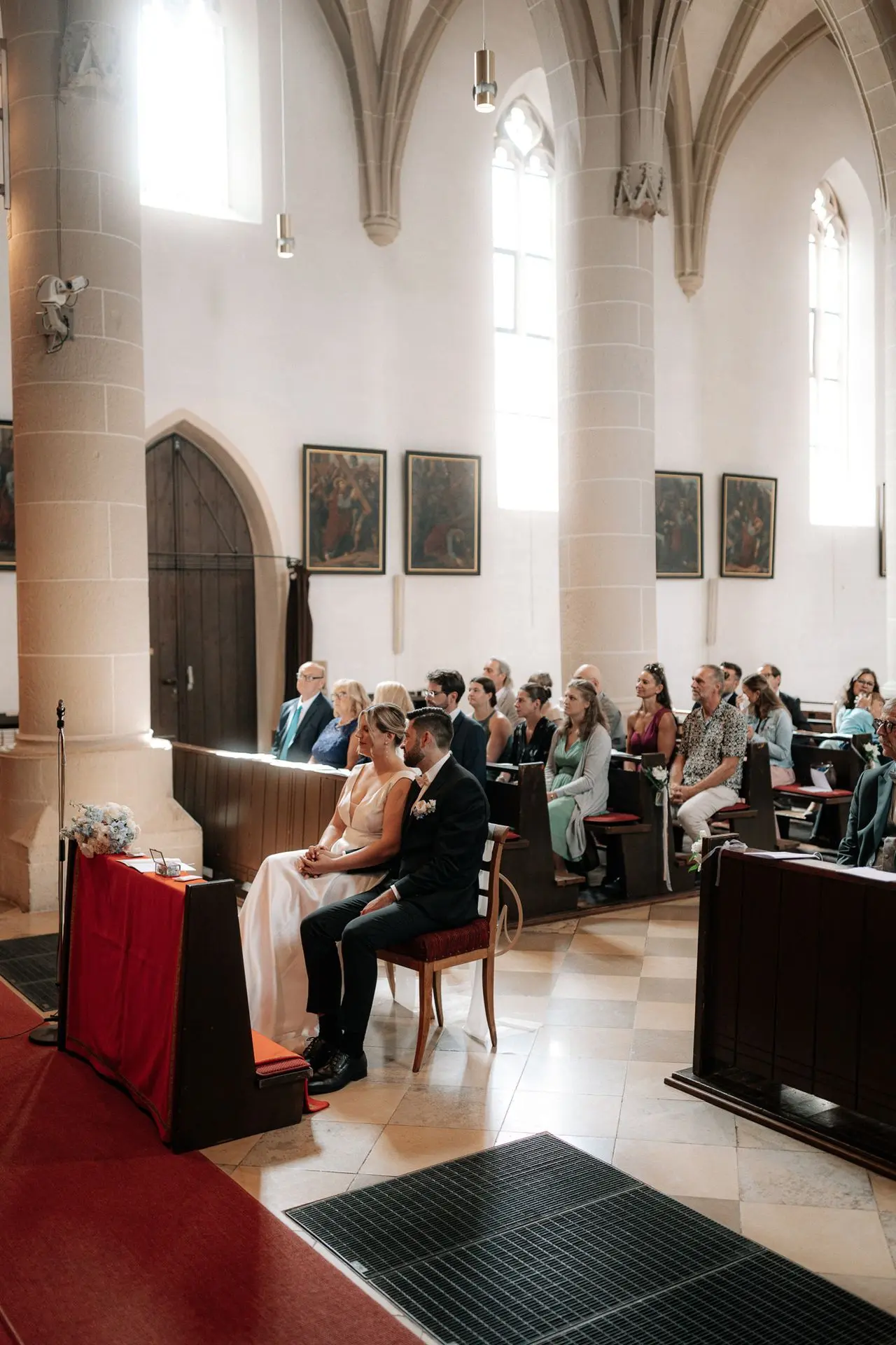 Eine der wenigen Hochzeiten, die ich während meiner Babypause in 2025 fotografiert habe, war die elegante Sommerhochzeit von Sabrina und Daniel in Kronach. An meiner Seite unterstütze mich meine zweite Fotografin Lidia, um den Tag aus unterschiedlichen Perspektiven zu fotografieren. Besonders lohnenswert war dies während der Kirche. So konnten zum Beispiel der Einzug der Braut mit ihrem Vater, sowie Ja-Wort und Ringwechsel sowohl mit Blick von vorne auf das Brautpaar, als auch von hinten aus Sicht der Gäste festgehalten werden, was der Reportage noch mehr Leben, Emotion und Authentizität verleiht.