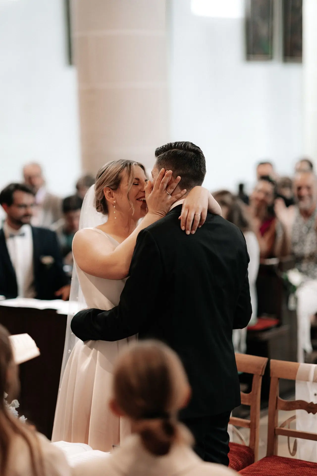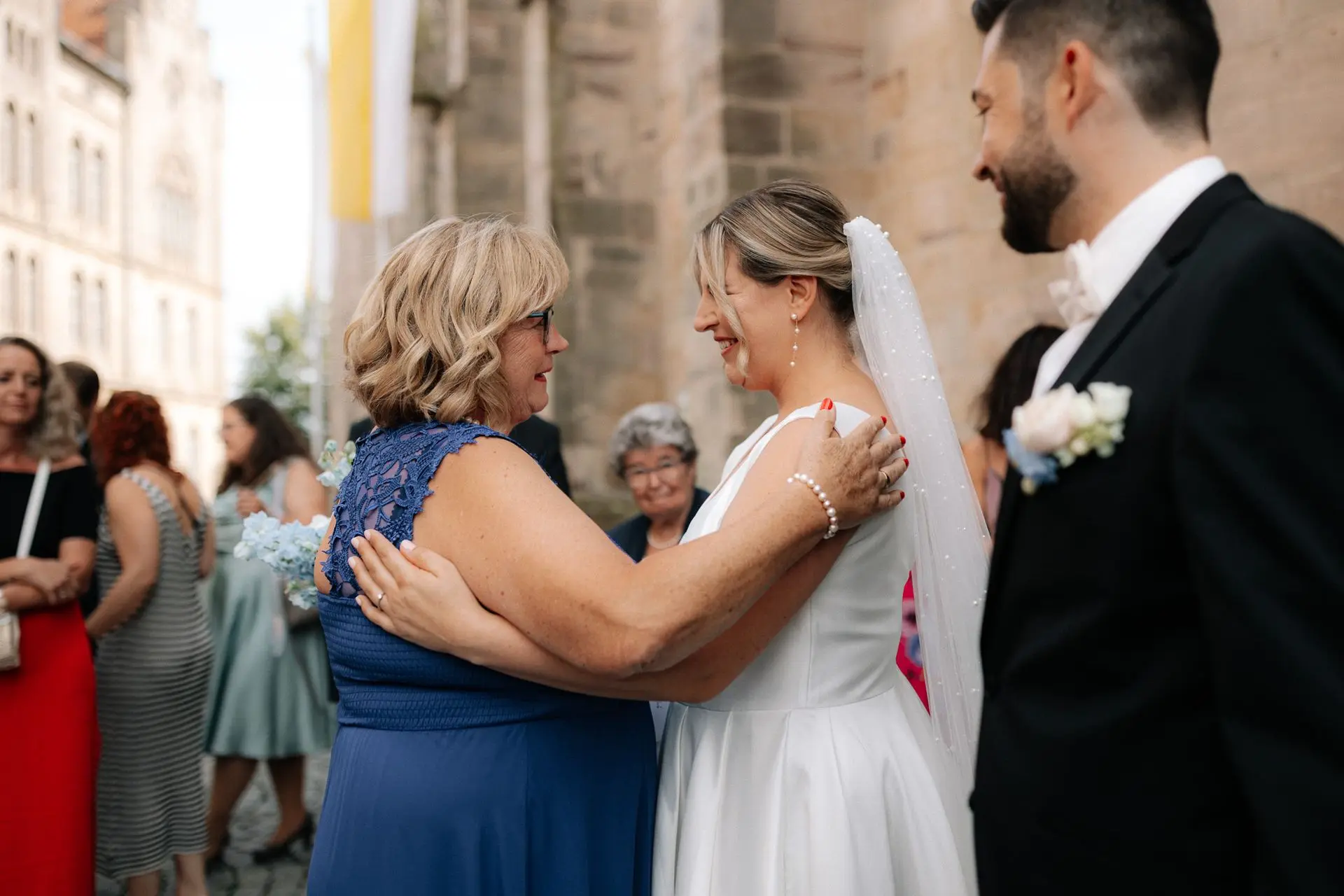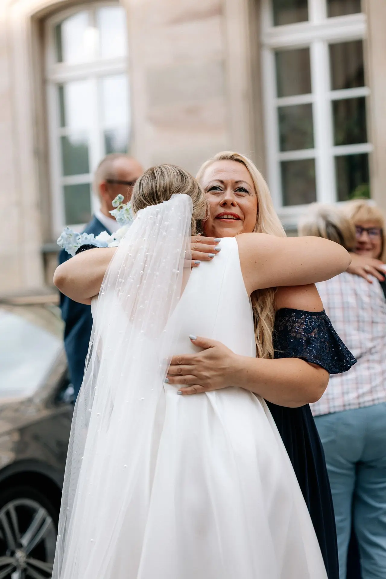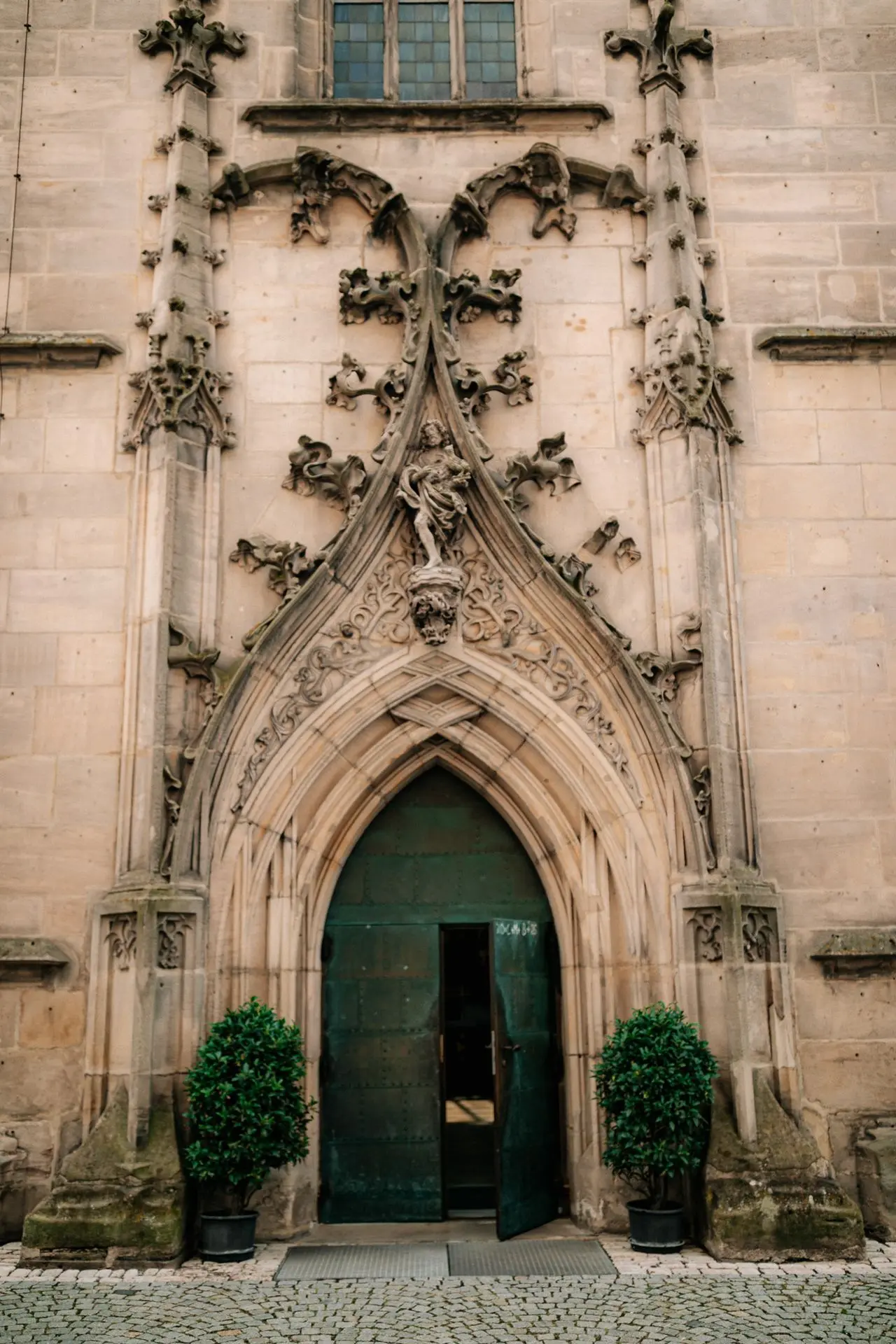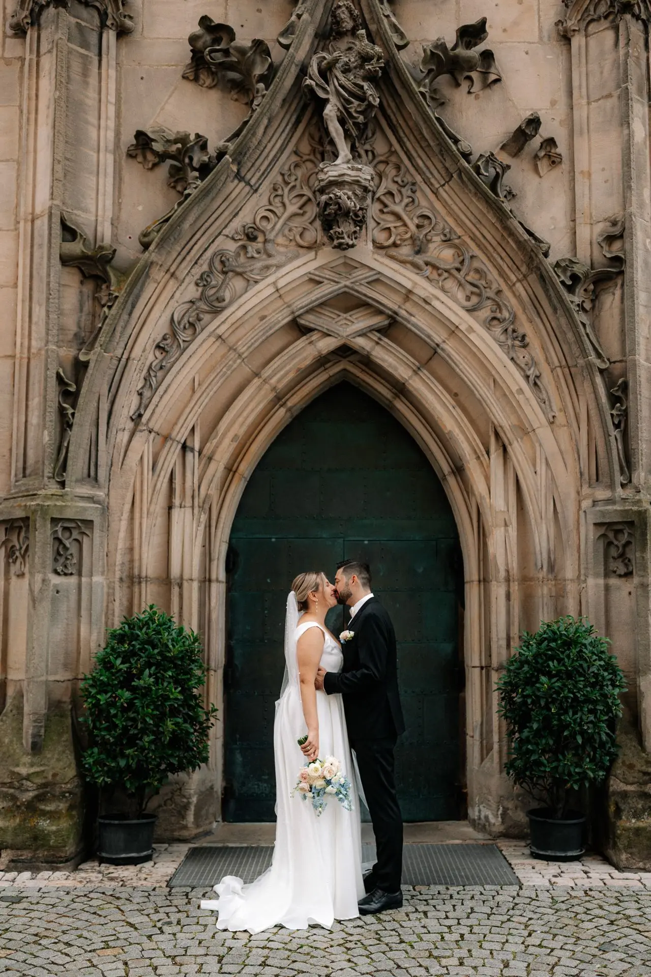 Eine der wenigen Hochzeiten, die ich während meiner Babypause in 2025 fotografiert habe, war die elegante Sommerhochzeit von Sabrina und Daniel in Kronach. An meiner Seite unterstütze mich meine zweite Fotografin Lidia, um den Tag aus unterschiedlichen Perspektiven zu fotografieren. Besonders lohnenswert war dies während der Kirche. So konnten zum Beispiel der Einzug der Braut mit ihrem Vater, sowie Ja-Wort und Ringwechsel sowohl mit Blick von vorne auf das Brautpaar, als auch von hinten aus Sicht der Gäste festgehalten werden, was der Reportage noch mehr Leben, Emotion und Authentizität verleiht.