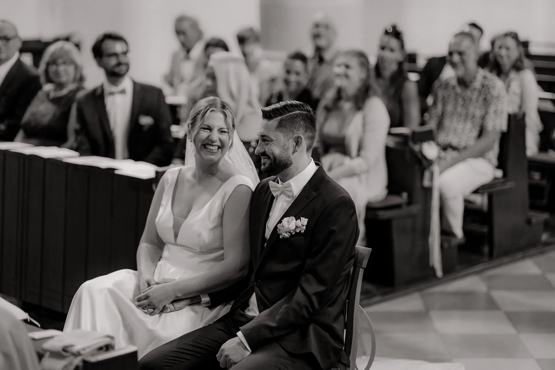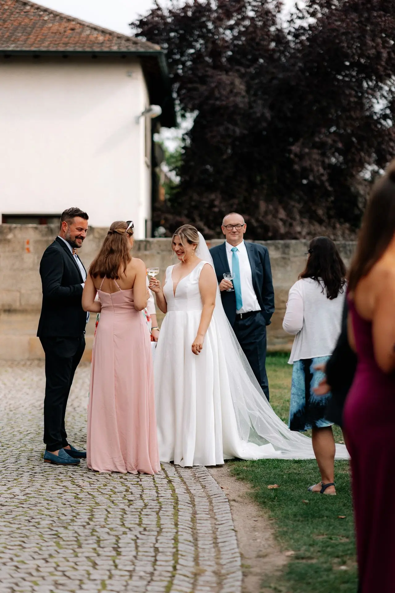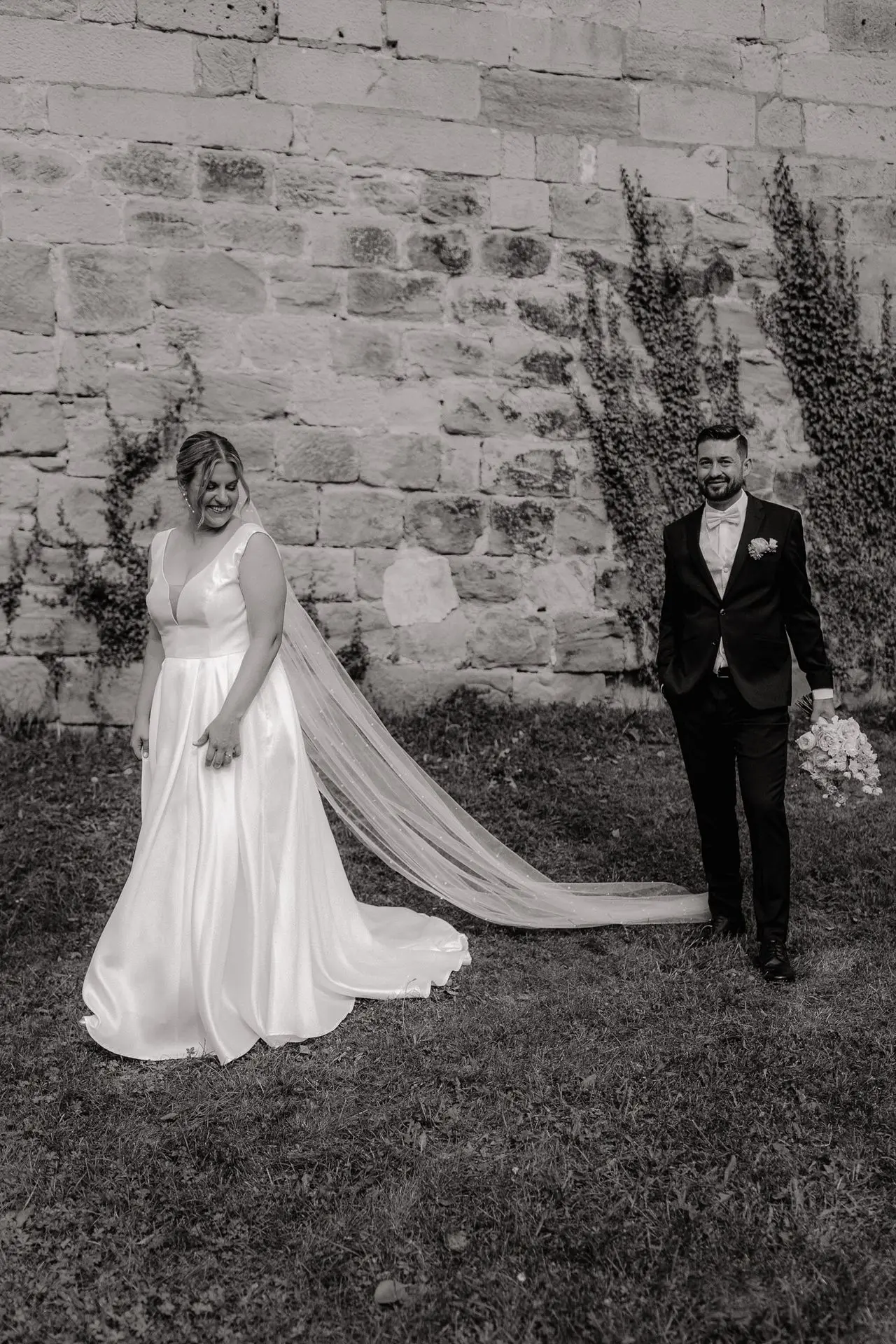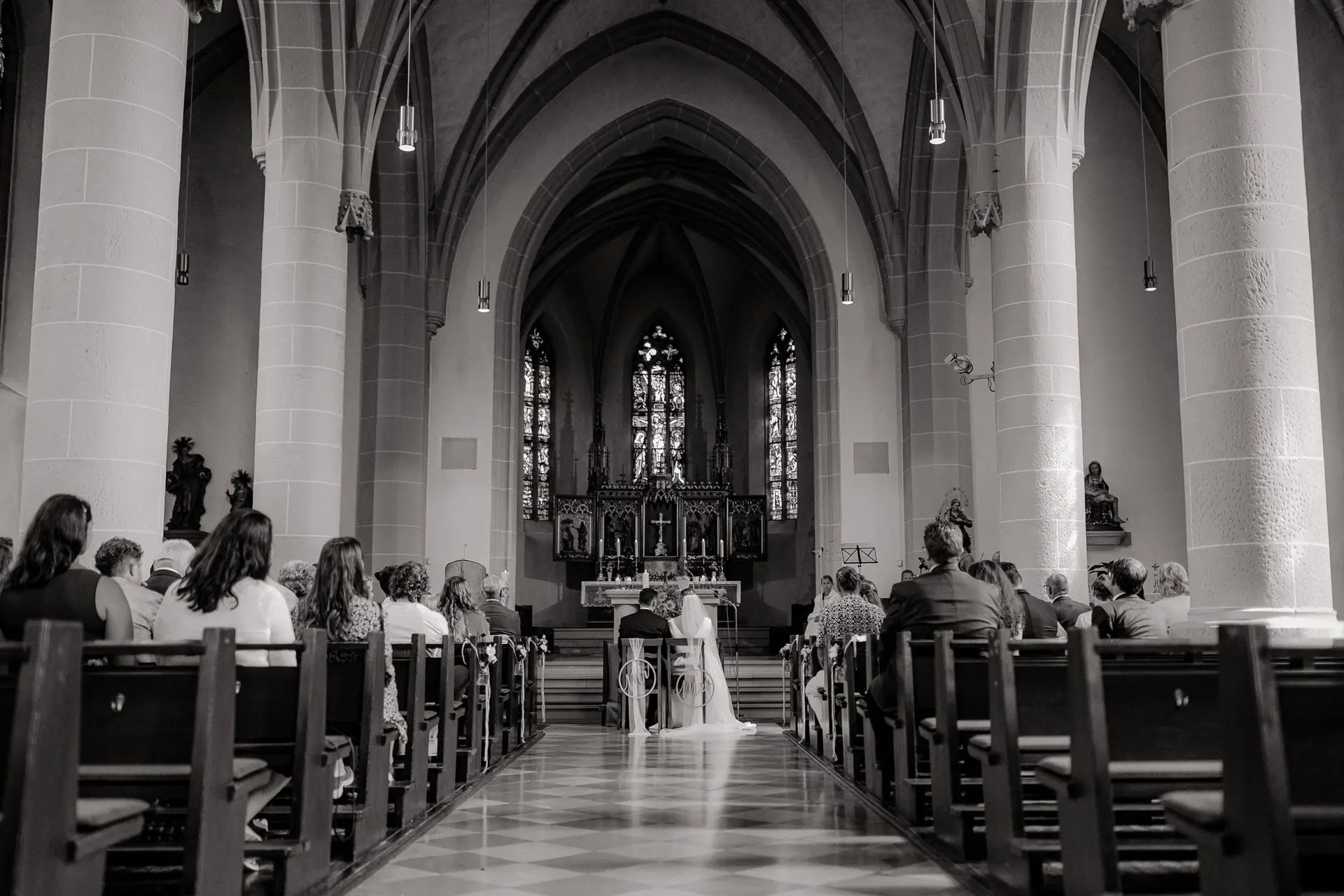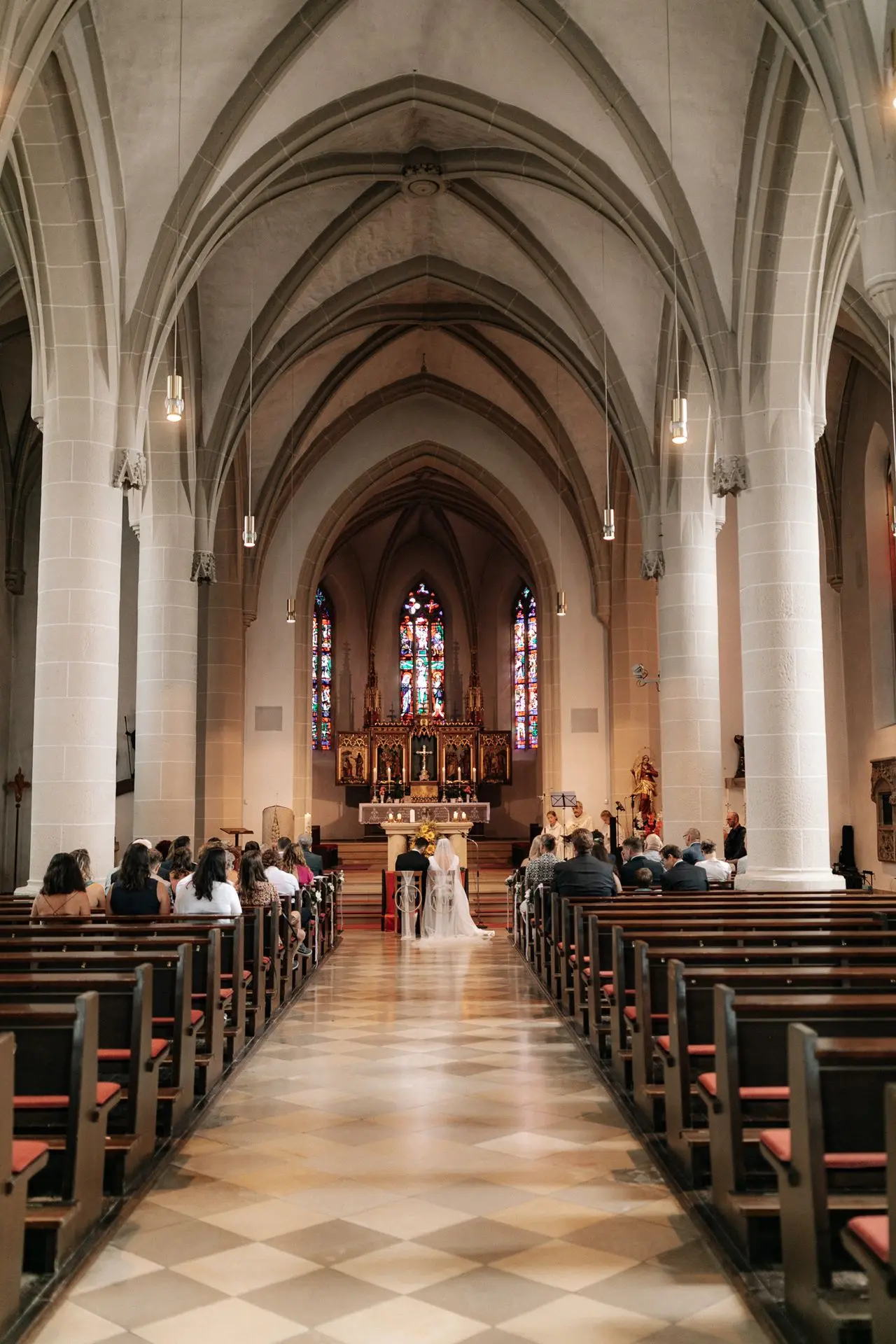 Eine der wenigen Hochzeiten, die ich während meiner Babypause in 2025 fotografiert habe, war die elegante Sommerhochzeit von Sabrina und Daniel in Kronach. An meiner Seite unterstütze mich meine zweite Fotografin Lidia, um den Tag aus unterschiedlichen Perspektiven zu fotografieren. Besonders lohnenswert war dies während der Kirche. So konnten zum Beispiel der Einzug der Braut mit ihrem Vater, sowie Ja-Wort und Ringwechsel sowohl mit Blick von vorne auf das Brautpaar, als auch von hinten aus Sicht der Gäste festgehalten werden, was der Reportage noch mehr Leben, Emotion und Authentizität verleiht.