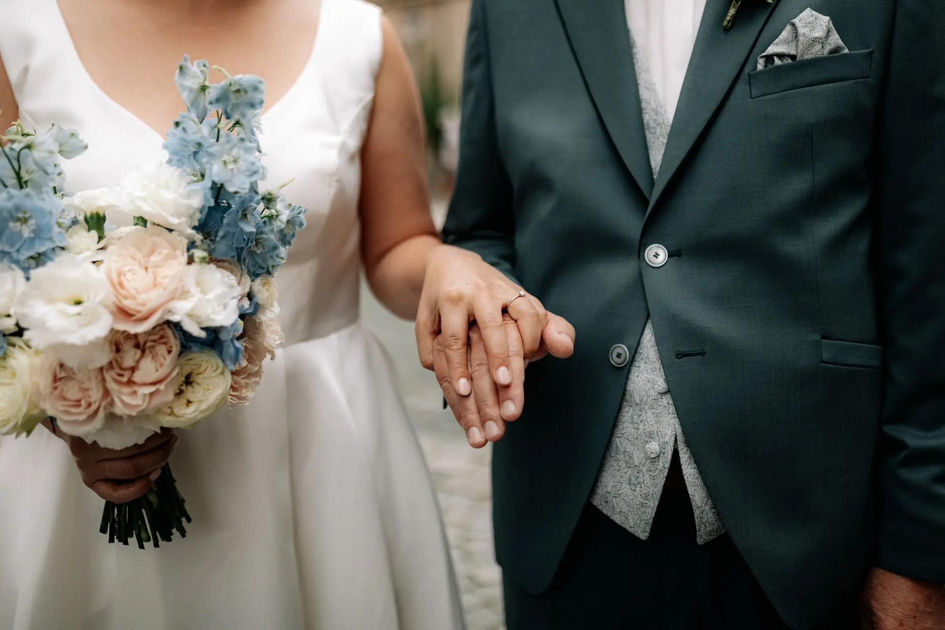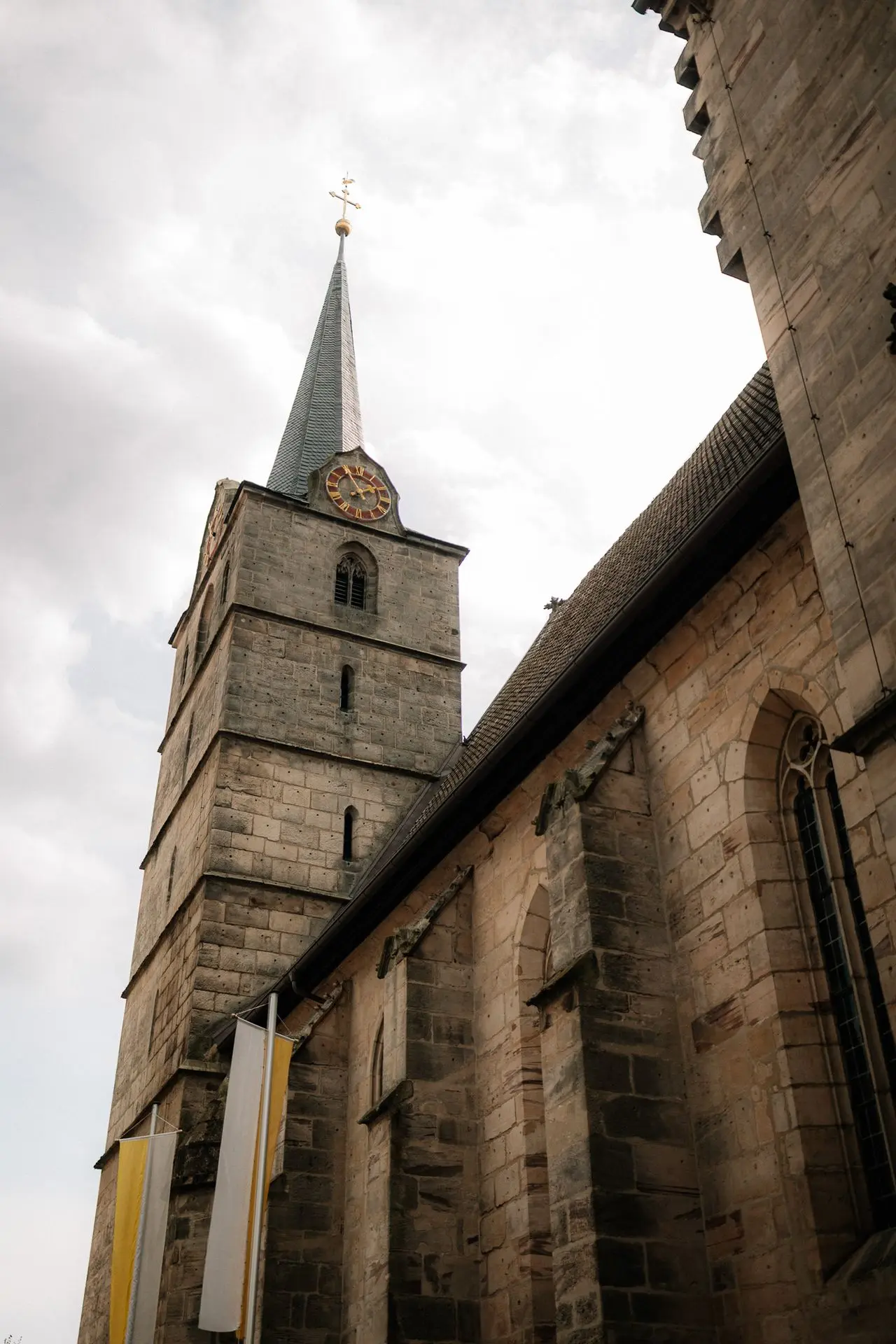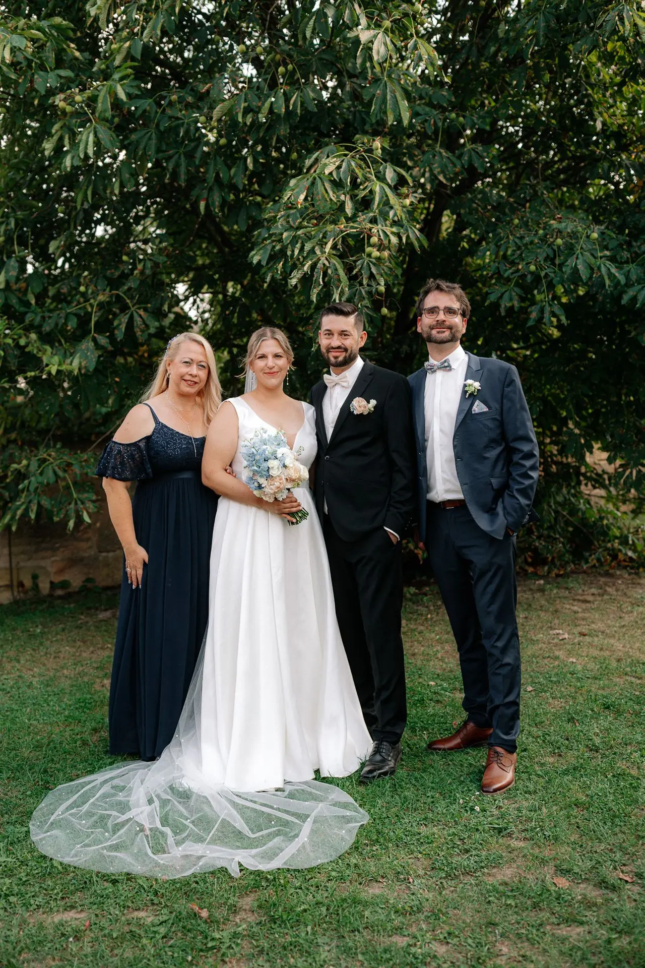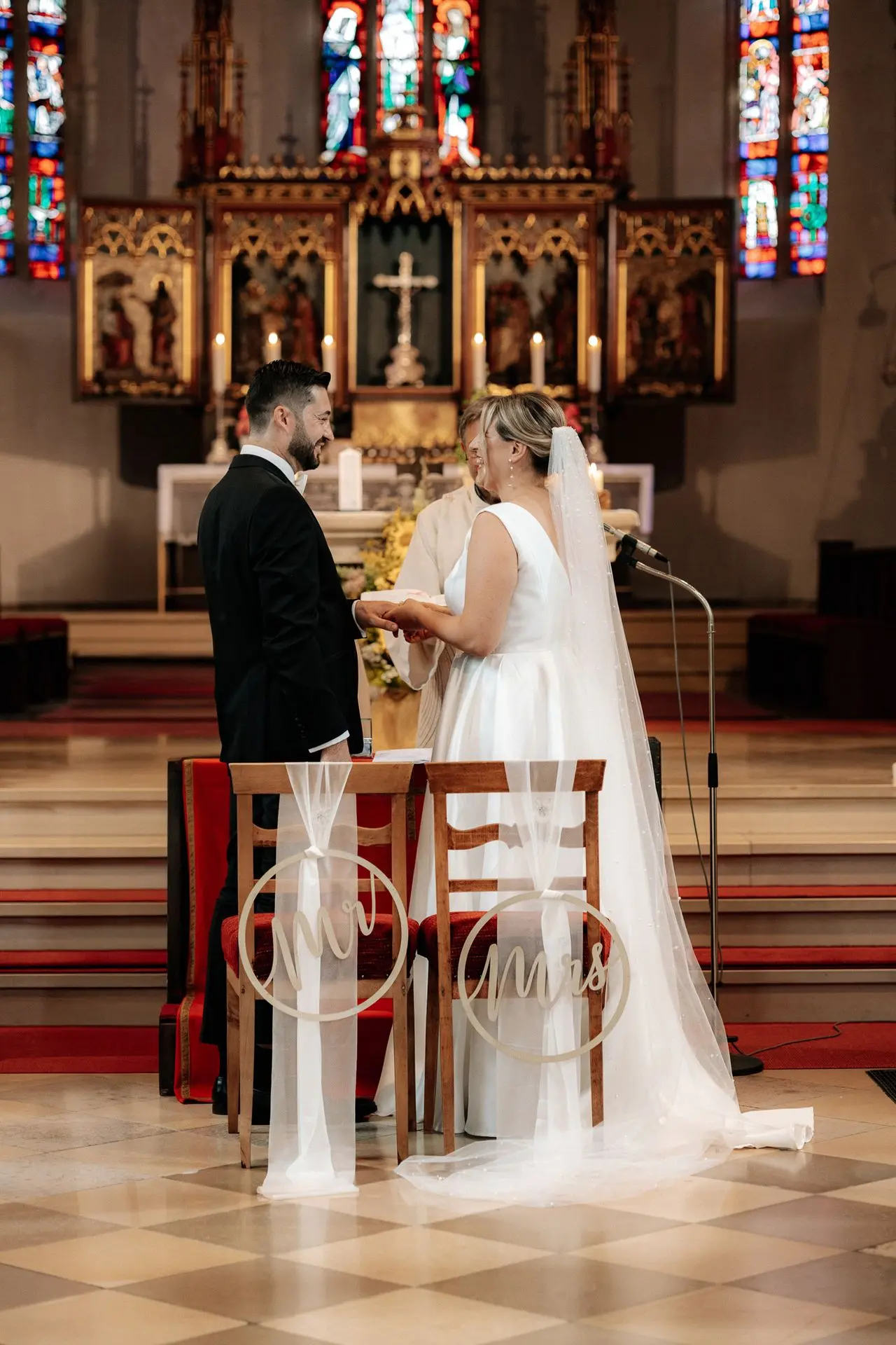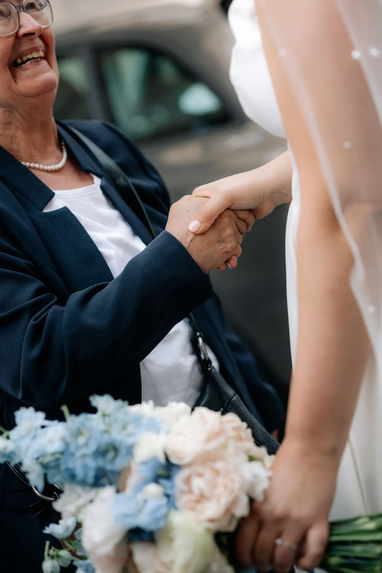Eine der wenigen Hochzeiten, die ich während meiner Babypause in 2025 fotografiert habe, war die elegante Sommerhochzeit von Sabrina und Daniel in Kronach. An meiner Seite unterstütze mich meine zweite Fotografin Lidia, um den Tag aus unterschiedlichen Perspektiven zu fotografieren. Besonders lohnenswert war dies während der Kirche. So konnten zum Beispiel der Einzug der Braut mit ihrem Vater, sowie Ja-Wort und Ringwechsel sowohl mit Blick von vorne auf das Brautpaar, als auch von hinten aus Sicht der Gäste festgehalten werden, was der Reportage noch mehr Leben, Emotion und Authentizität verleiht.