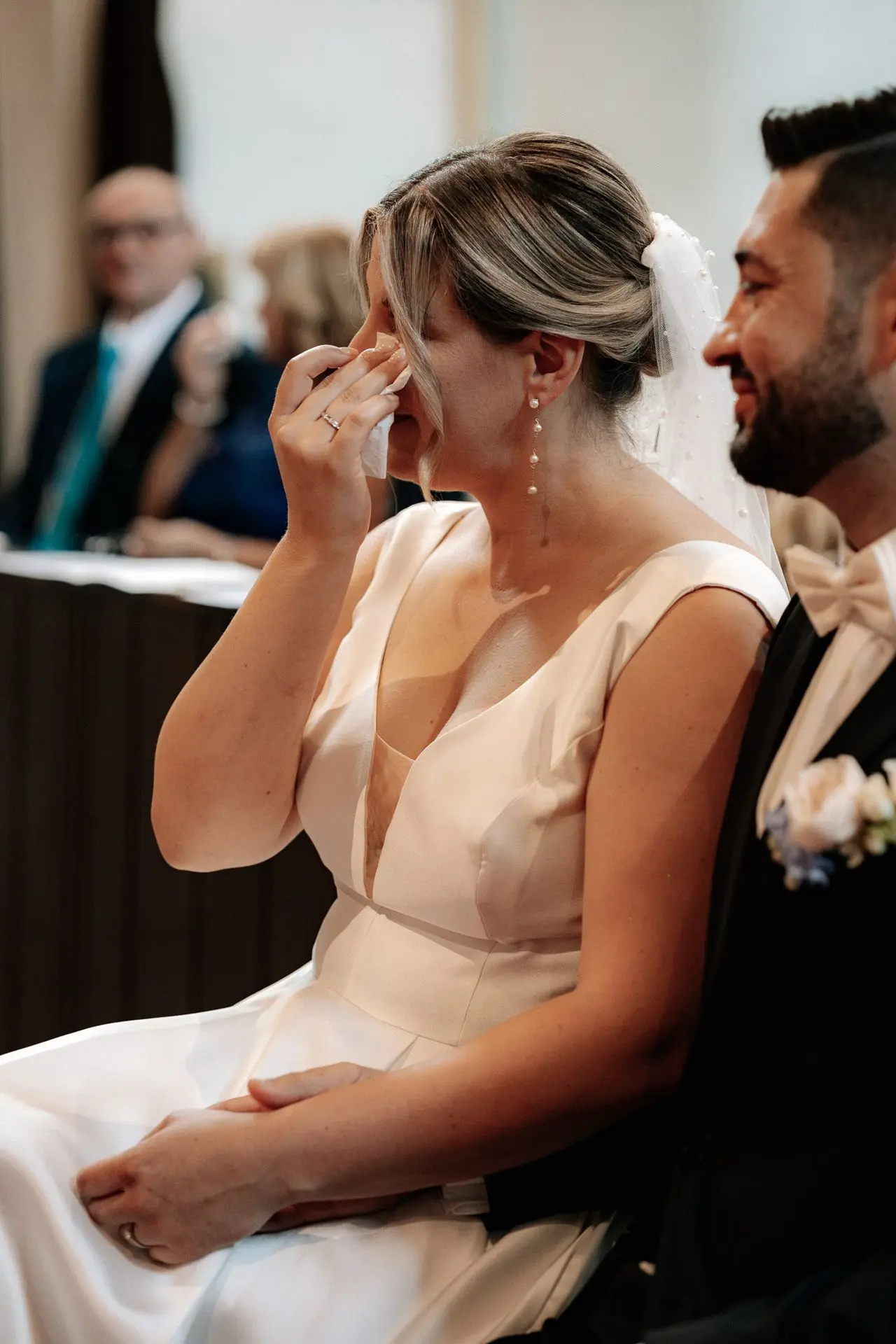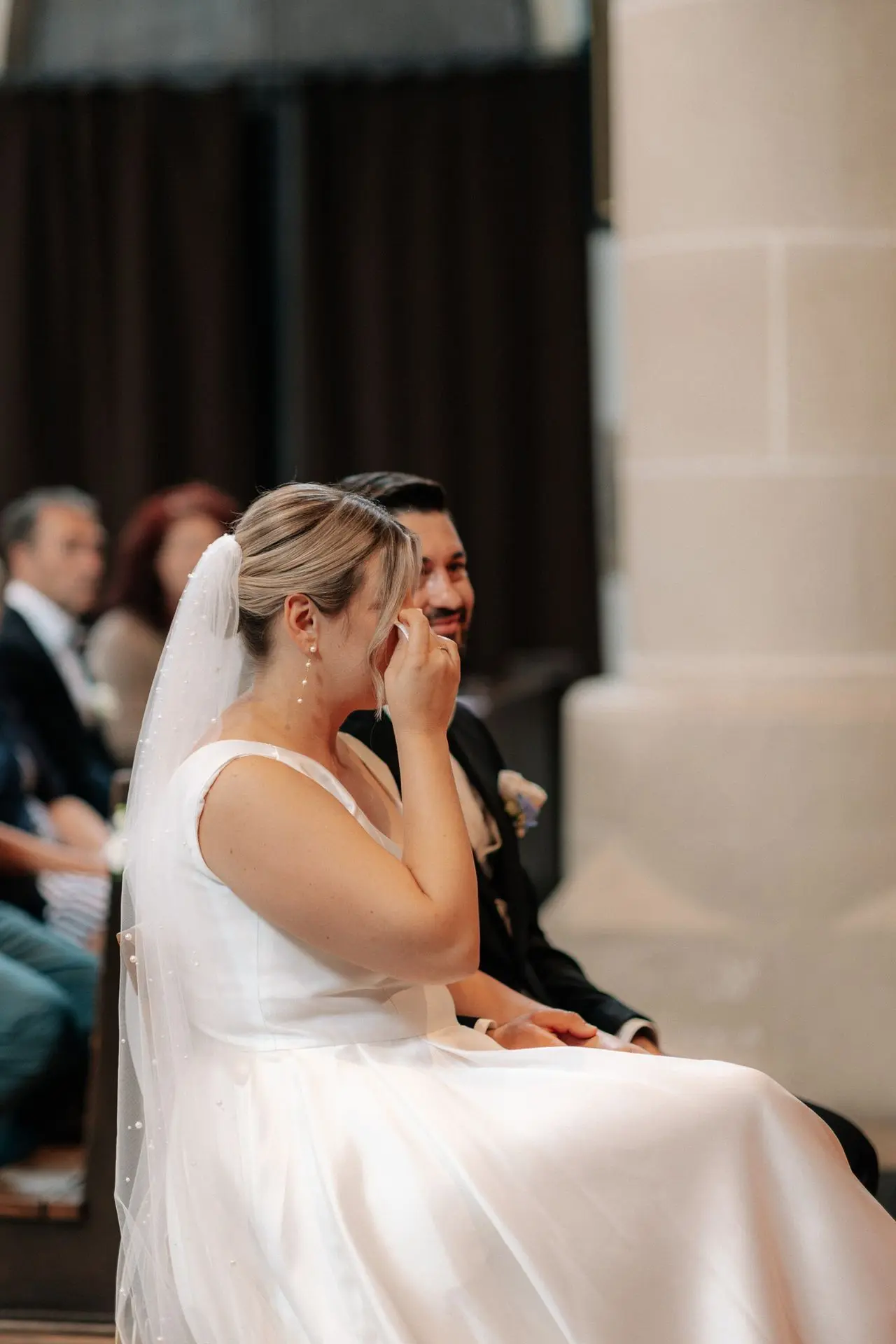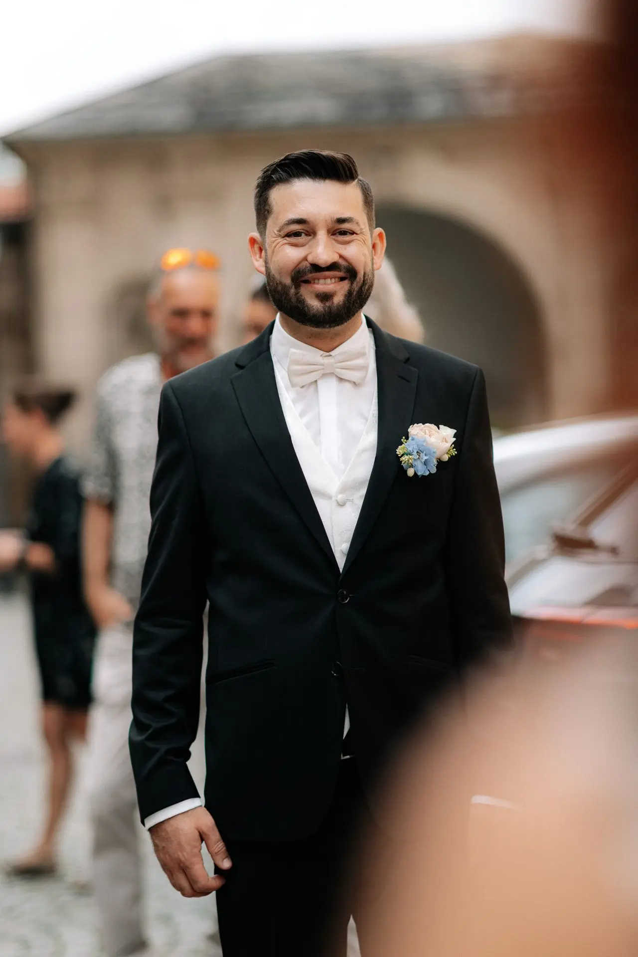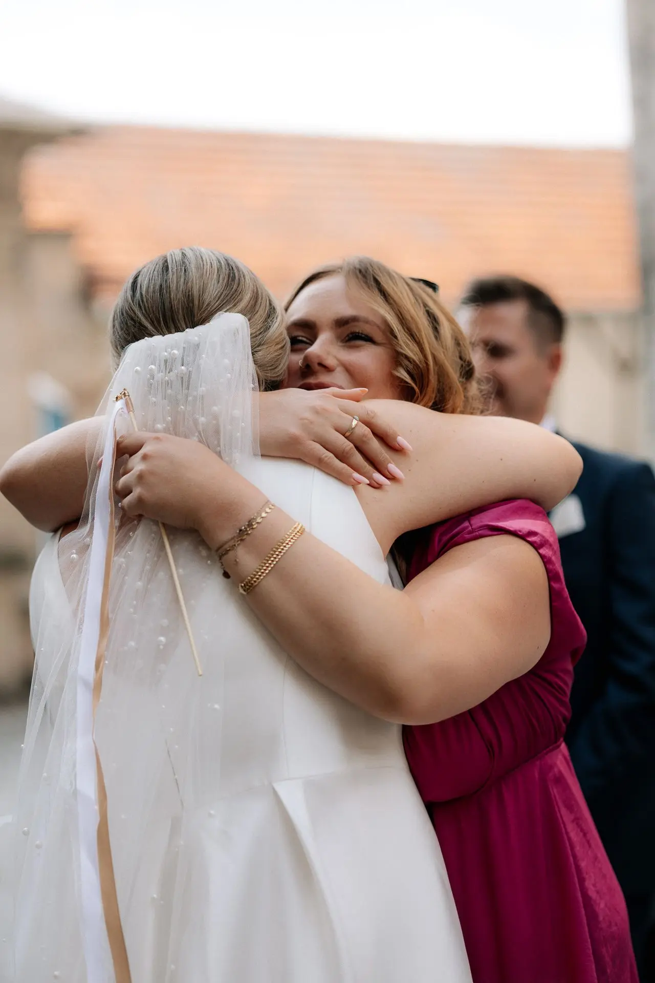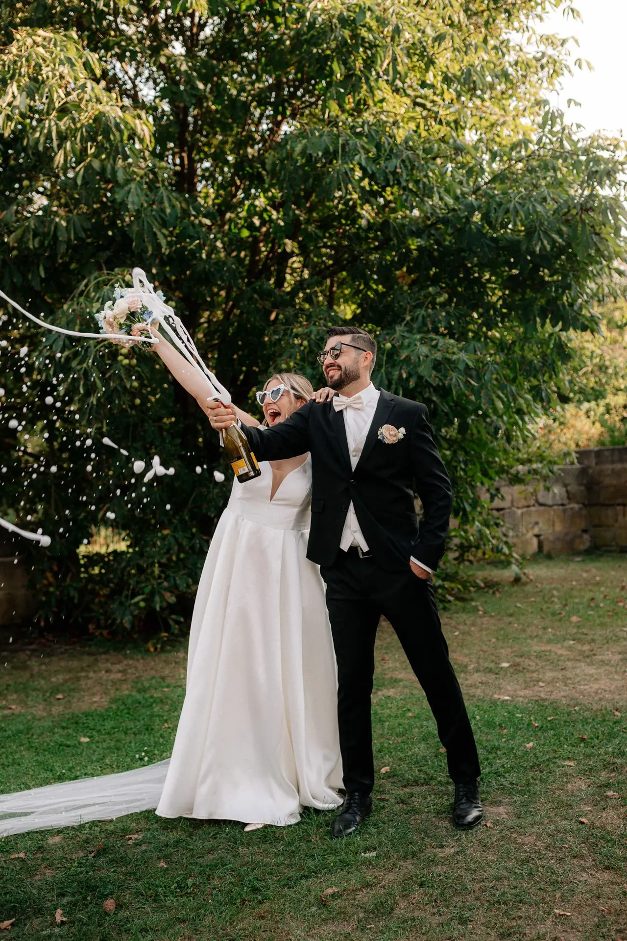 Eine der wenigen Hochzeiten, die ich während meiner Babypause in 2025 fotografiert habe, war die elegante Sommerhochzeit von Sabrina und Daniel in Kronach. An meiner Seite unterstütze mich meine zweite Fotografin Lidia, um den Tag aus unterschiedlichen Perspektiven zu fotografieren. Besonders lohnenswert war dies während der Kirche. So konnten zum Beispiel der Einzug der Braut mit ihrem Vater, sowie Ja-Wort und Ringwechsel sowohl mit Blick von vorne auf das Brautpaar, als auch von hinten aus Sicht der Gäste festgehalten werden, was der Reportage noch mehr Leben, Emotion und Authentizität verleiht.