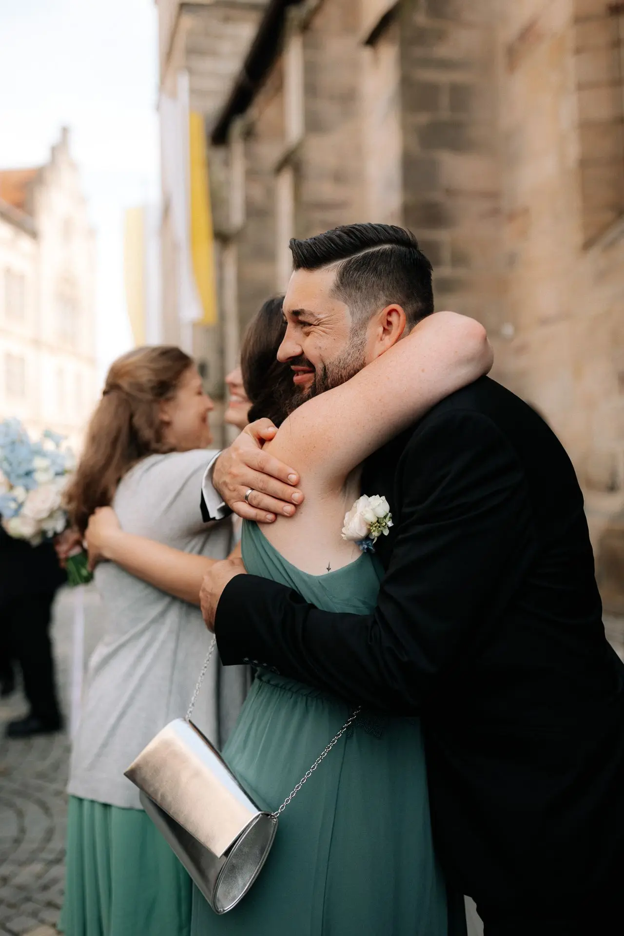 Eine der wenigen Hochzeiten, die ich während meiner Babypause in 2025 fotografiert habe, war die elegante Sommerhochzeit von Sabrina und Daniel in Kronach. An meiner Seite unterstütze mich Lidia (Olivia Luz Weddings) - eine meiner zweiten Fotografinnen - um den Tag aus unterschiedlichen Perspektiven und Blickwinkeln zu fotografieren. Besonders lohnenswert war die Anwesenheit meiner zweiten Fotografin während der Kirche. So konnten der Einzug der Braut mit ihrem Vater, sowie Ja-Wort und Ringwechsel sowohl mit Blick von vorne auf das Brautpaar, als auch von hinten aus Sicht der Gäste festgehalten werden, was der Reportage noch mehr Leben, Emotion und Authentizität verleiht.