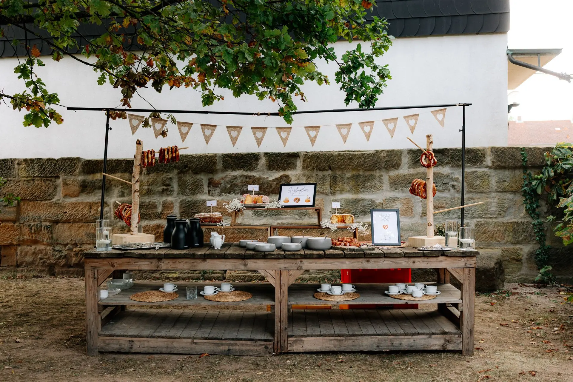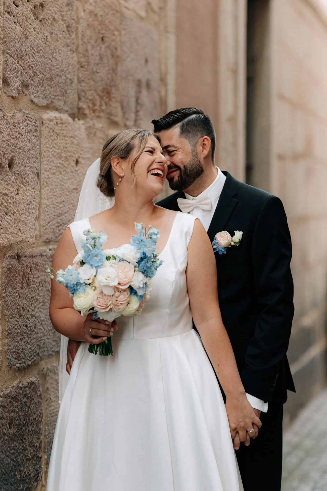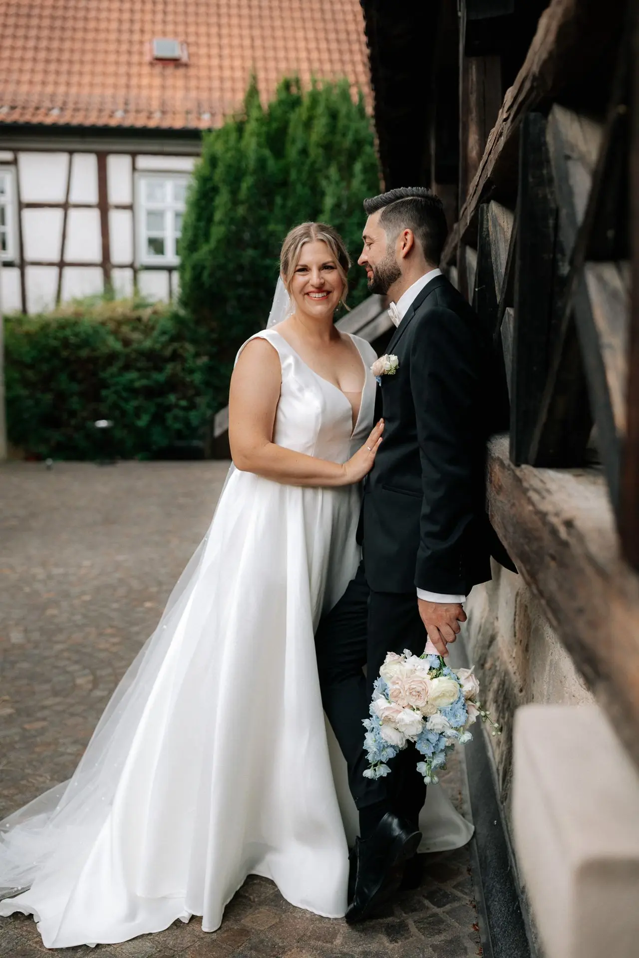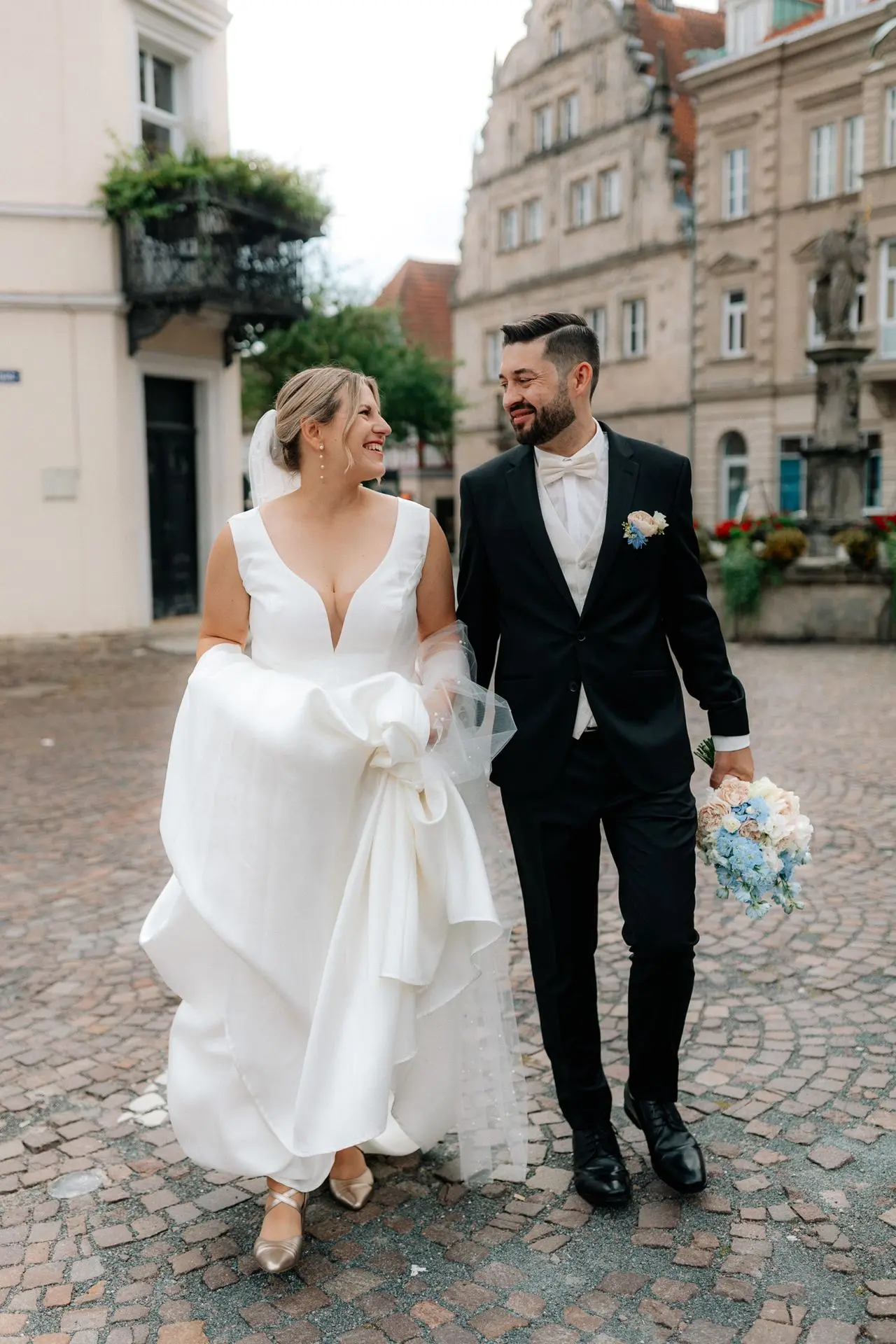 Nach der Trauung konnte ich mit dem frisch verheirateten Paar zu einem entspannten Portrait-Fotoshooting in der romantischen Altstadtkulisse der malerischen Kleinstadt Kronach aufbrechen, während meine zweite Fotografin die Gäste bereits zur Location in der Festscheune Redwitz begleiten und dort Aufnahmen von Dekoration, Räumlichkeiten und den Gästen festhalten konnte.