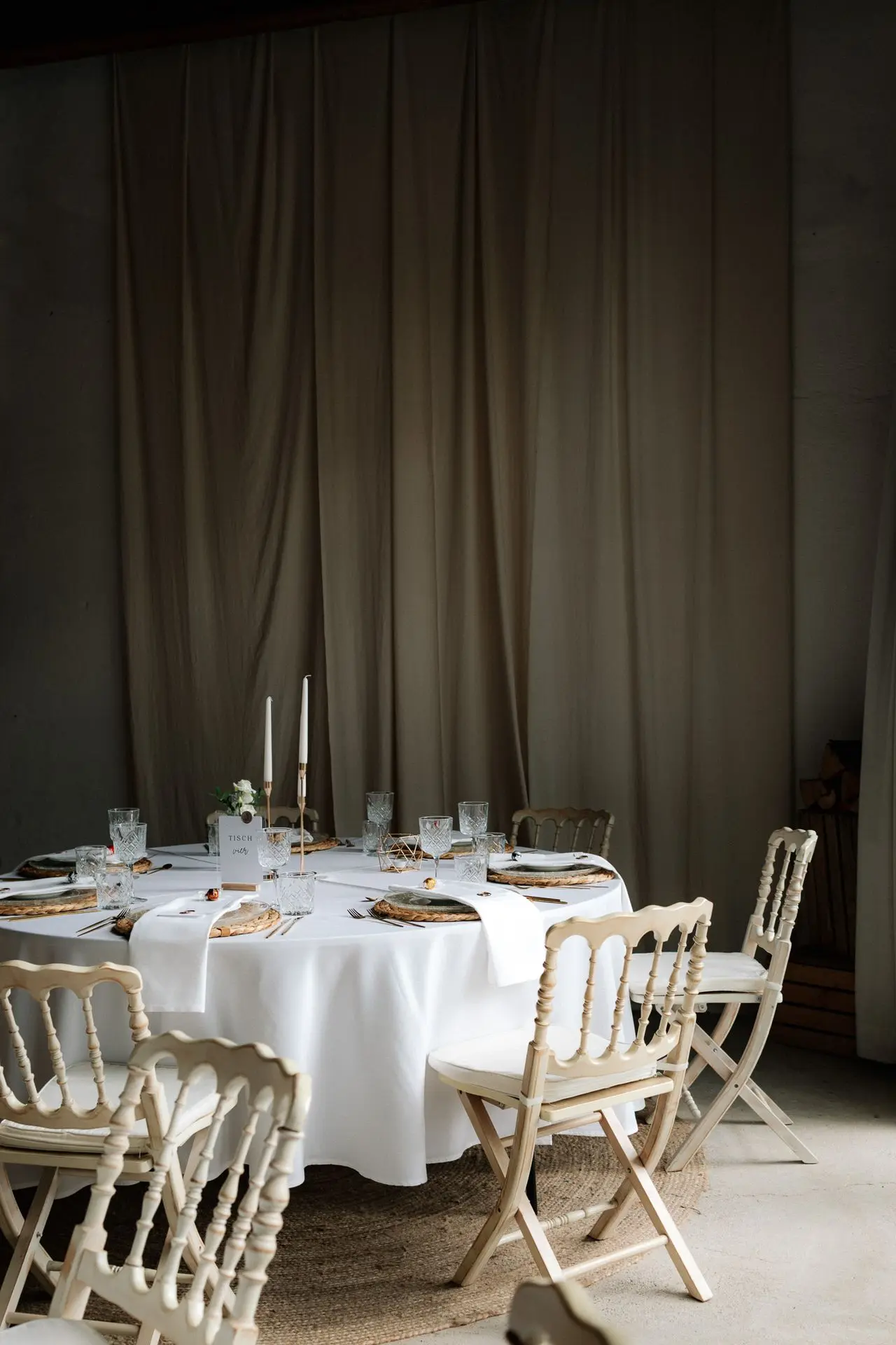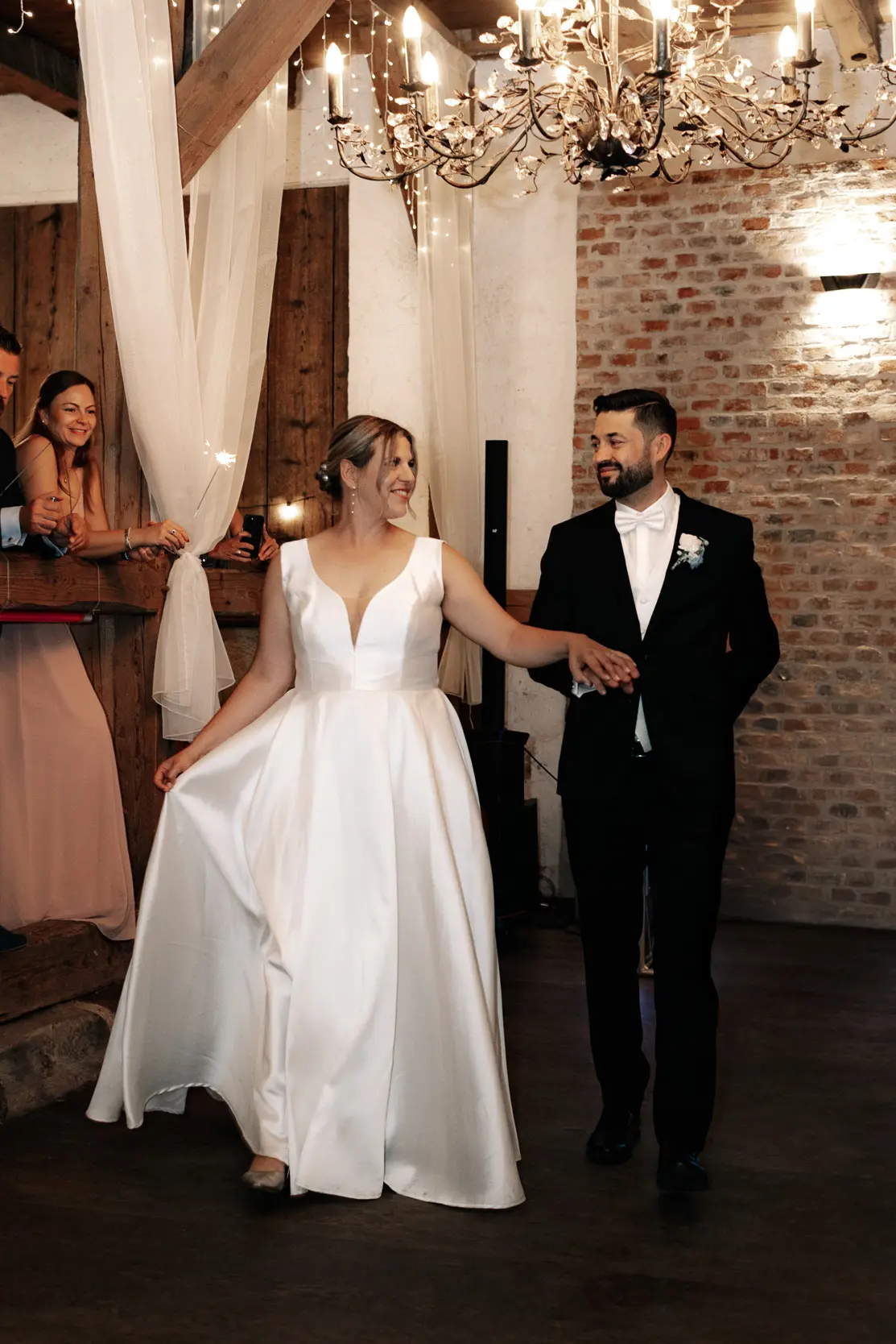 Zum Abendessen wurde die festlich geschmückte Hochzeitsscheune in Redwitz an der Rodach für die Gäste geöffnet und ein ausgelassener Abend mit köstlichem Buffet, emotionalen Ansprachen, Piñata und Hochzeitsspielen, sowie einer selbstgebackenen Hochzeitsstorte standen bevor. Das letzte fotografische Highlight des Tages war der Eröffnungstanz. Mit einem eleganten Hochzeitswalzer verzauberte das Hochzeitspaar seine Gäste und ermöglichte einzigartige Momentaufnahmen zum Abschluss.