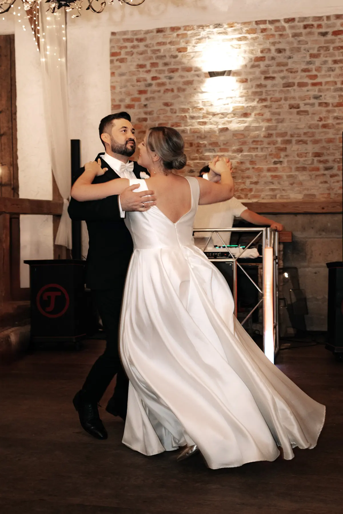 Das letzte fotografische Highlight des Tages war der Eröffnungstanz. Mit einem eleganten Hochzeitswalzer verzauberte das Paar seine Gäste und ermöglichte einzigartige Momentaufnahmen zum Abschluss.