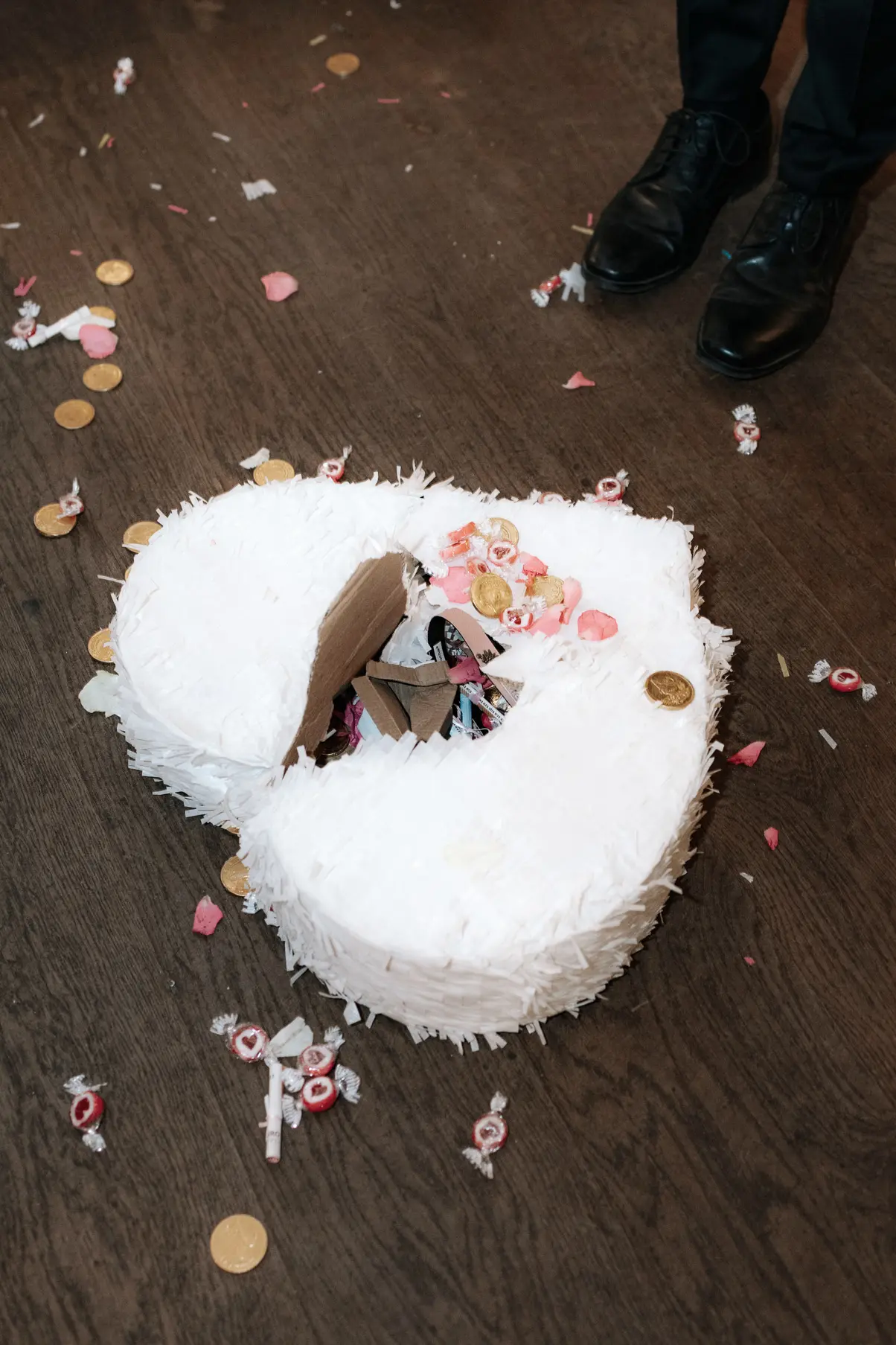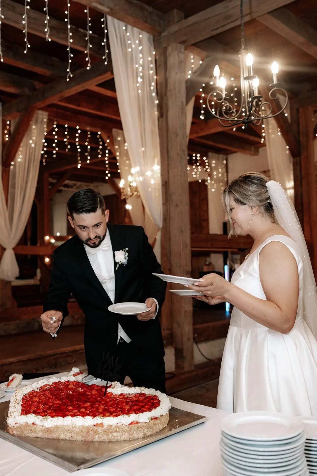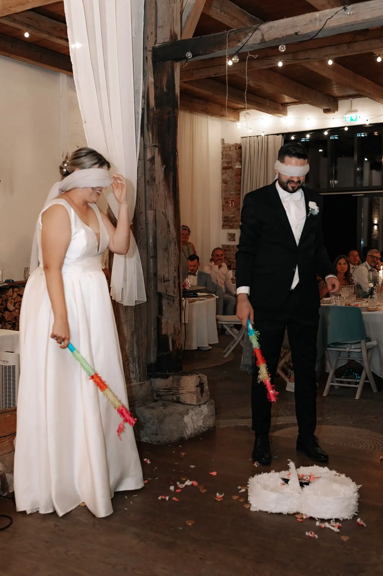 Am Abend wurde die Hochzeitsscheune in Redwitz für die Gäste geöffnet und ein ausgelassener Abend mit köstlichem Buffet, emotionalen Ansprachen, Piñata und Hochzeitsspielen, sowie einer leckeren Hochzeitsstorte standen bevor.